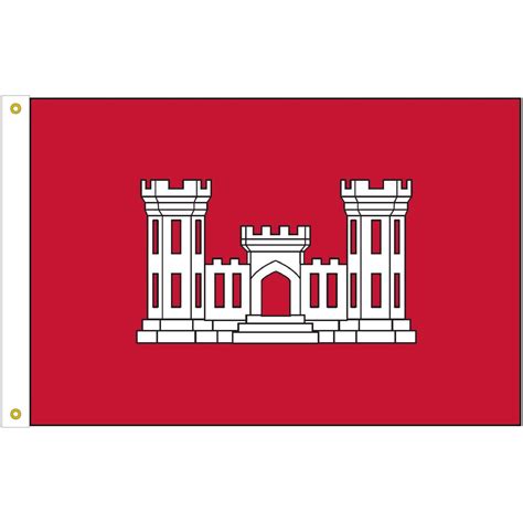 By endorsement dated 20 may 1981, the director, u.s. Larger flags require longer poles. This flag is also authorized to be flown on land by corps of engineers. Like any of the corps' projects, an engineer flag will stand the test of time. Web strength, pride, heraldry, prestige, and honor. It features a white polyester duck heading and brass grommets. Four rows of stitching on. Army corps of engineers flags features the white corps of engineers castle printed and centered on a red field. Products related to army engineer flags if you’re planning on buying an engineer flag, you might want to also consider a military medallion. Web the army corps of engineers flag is a medieval castle as the logo, it's typically a white castle with three towers set on a red background, this was started in 1840 on an informal basis.