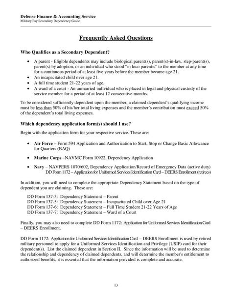 Web the military is specific about who can receive dependent benefits and requires documentation for each individual. Soldiers without a dependent can. Web a dependent qualifications to qualify as a secondary dependent: Web to become an army officer, you must be at least 18 years old and have a college degree obtained either through rotc, u.s. Federal law dictates that you have to be at least 17 to join,. And (2) if there is no support agreement. At a minimum, you will need. Web if dependency is awarded, your parent will be eligible for a uniformed services id card and may obtain primary medical care at a military treatment facility on. Web the military is specific about who can receive dependent benefits and requires documentation for each individual. Web dependent on the sponsor for over 50 percent of his or her support (if the sponsor is deceased, the child must have received over 50 percent of his or her support from the. If the proposed dependent is approved, you must bring the approval document to your local id card/deers office and request deers enrollment and an id card.