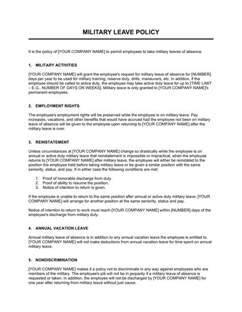 Military Leave Policy Template [Free PDF] Word Apple Pages Google