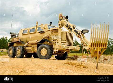 A U.S. Army Buffalo explosive device detection vehicle, assigned to