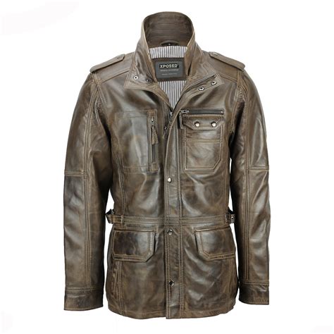 New Mens Retro Real Leather Washed Tan Brown Vintage Military Coat