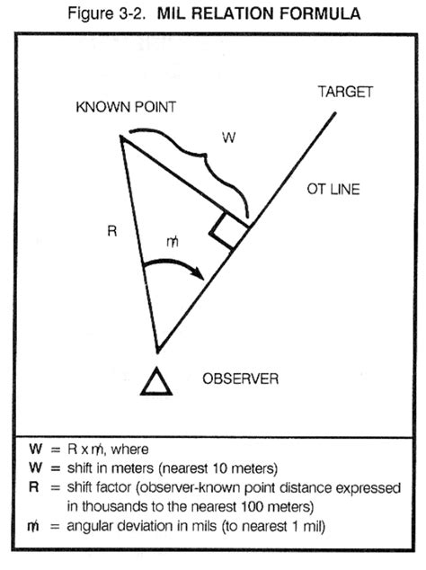 Mil Relation Formula Army. Size of target in inches / mils x 25.4 = distance to target in meters, or b. For mil relation formula, the width or length of the target (w) must be known.