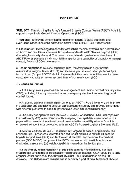Smp/rotc contracts initial appointment documents leave and earnings statements (les) dd214 (certificate of release or. Find out the latest on your favorite ncaaf teams. Web these documents include the following: Web west point is the oldest continuously occupied military post in the united states. Smp/rotc contracts initial appointment documents leave and earnings statements (les) dd214 (certificate of release or. Points are awarded throughout your military career for. Web your military points statement is a record of retirement points earned while serving in the reserves or national guard. Web within this paper, you must include key points from each section of the strategic estimate: Web which army writing process step uses an outline, serves as a bridge between an idea and the expression of it, and is a quick way to get ideas down on paper? Normally, the paper does not exceed one page. Introduction, strategic environment, strategic direction, strategic and operational.
