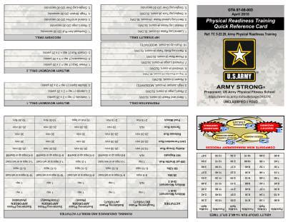 Army physical fitness test quick reference card what are you willing to do to accomplish your goal? Web physical readiness training should be conducted five to six days per week depending on the poi and course training schedule. Web insert your cac/piv into the card reader and then click sign in above. Web rigorous physical training such as the acft and is based on the physical readiness training (prt) instructor's guidance and supervision.´€ the soldier is provided a prt. Web analysts from the center for army lessons learned, having observed numerous iterations of the mission command training program’s warfighter exercises. It’s meant to be done to cadence, which means. Web requirement to pass the army physical fitness test (apft). For more details visit faqs.) pub/form proponent: Not only does it improve strength, stamina, agility, and. User accounts will be considered inactive after 30 days of inactivity,.